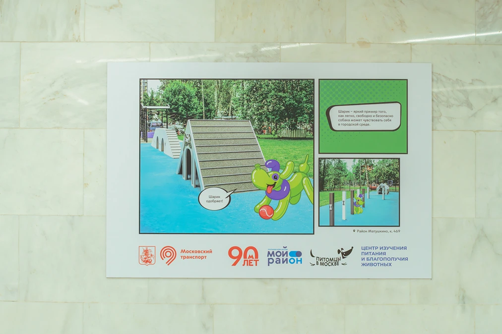 «Питомцы в Москве»: все на прогулку!»: в метро открылась тематическая фотовыставка-комикс