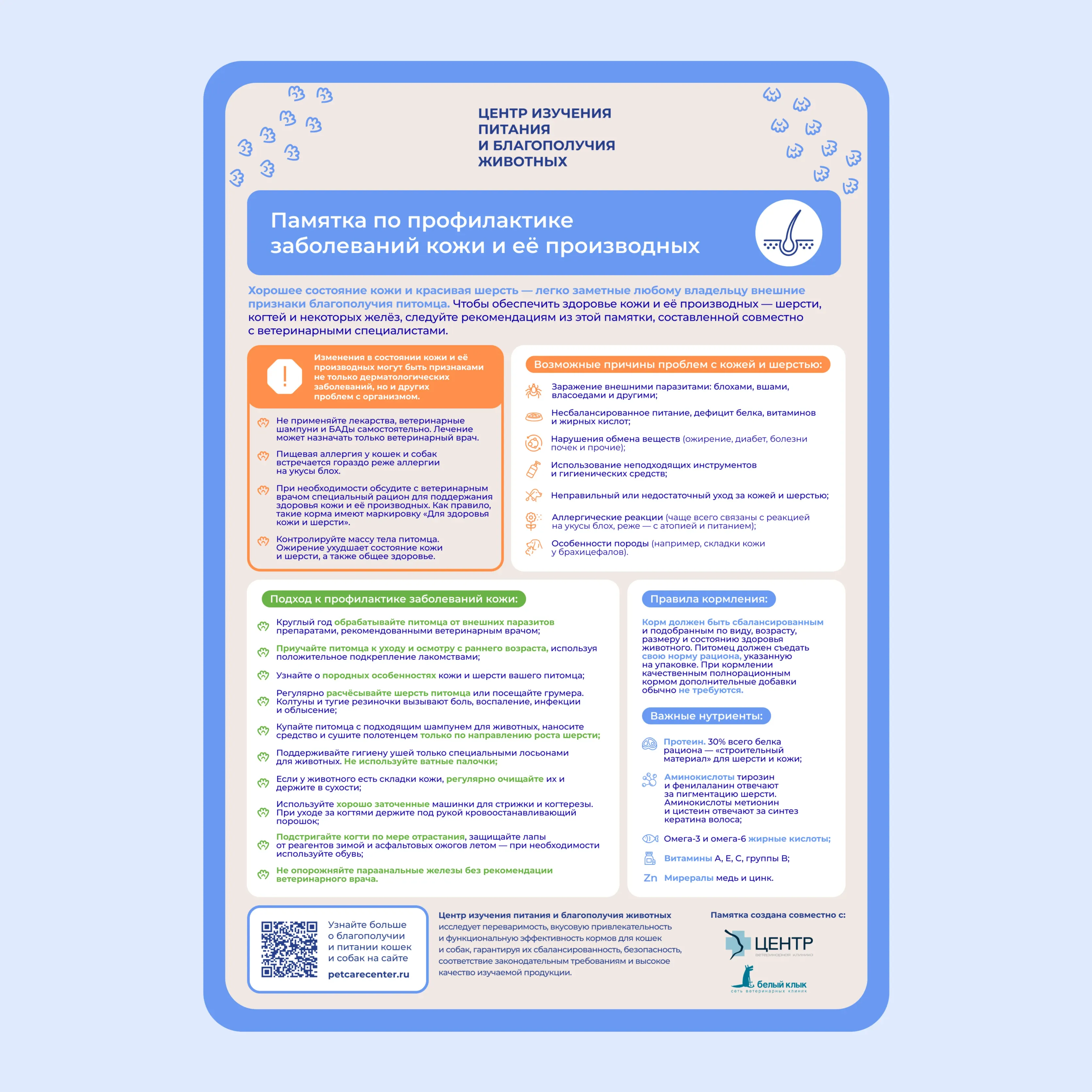 Информация, представленная в наших памятках, поможет не только предупредить развитие болезней, но и выявить их на самых ранних стадиях, чтобы своевременно обратиться за ветеринарной помощью. Мы сделали памятки максимально полезными, ёмкими и актуальными для владельцев животных, чтобы к ним было удобно обращаться в любое время и, конечно, делиться ими с близкими и коллегами.
